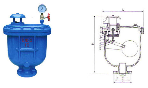 復合式排氣閥用于污水管道上的最高點或有閉氣的地方,靠排除管內(nèi)的氣體來疏通管道,達到正常工作。如不裝排氣閥,管道隨時出現(xiàn)起阻,是管道出水容量達不到設(shè)計要求,其次:其次:管道在運轉(zhuǎn)時出現(xiàn)停電、停泵管道及時出現(xiàn)負壓會引起管道振動或破裂,排(吸)氣閥就迅速把空氣吸入管內(nèi),防止管道振動或破裂。
