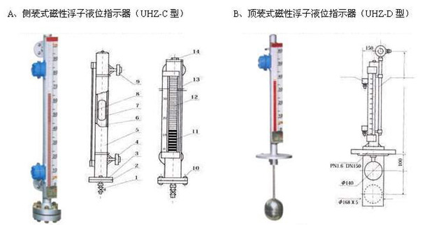 測(cè)裝式指示器 Installation on tank shell Magnetic Level Gage |